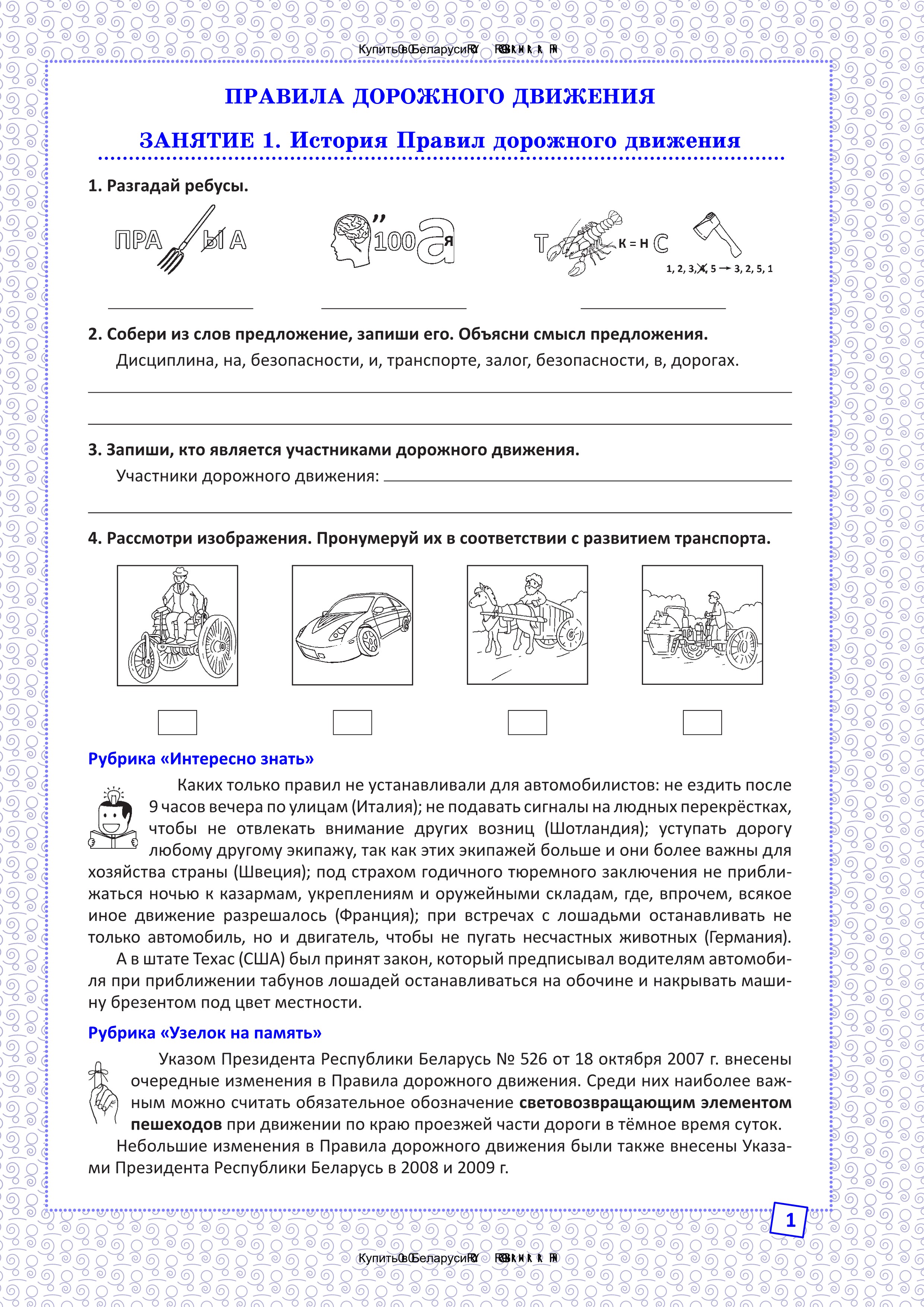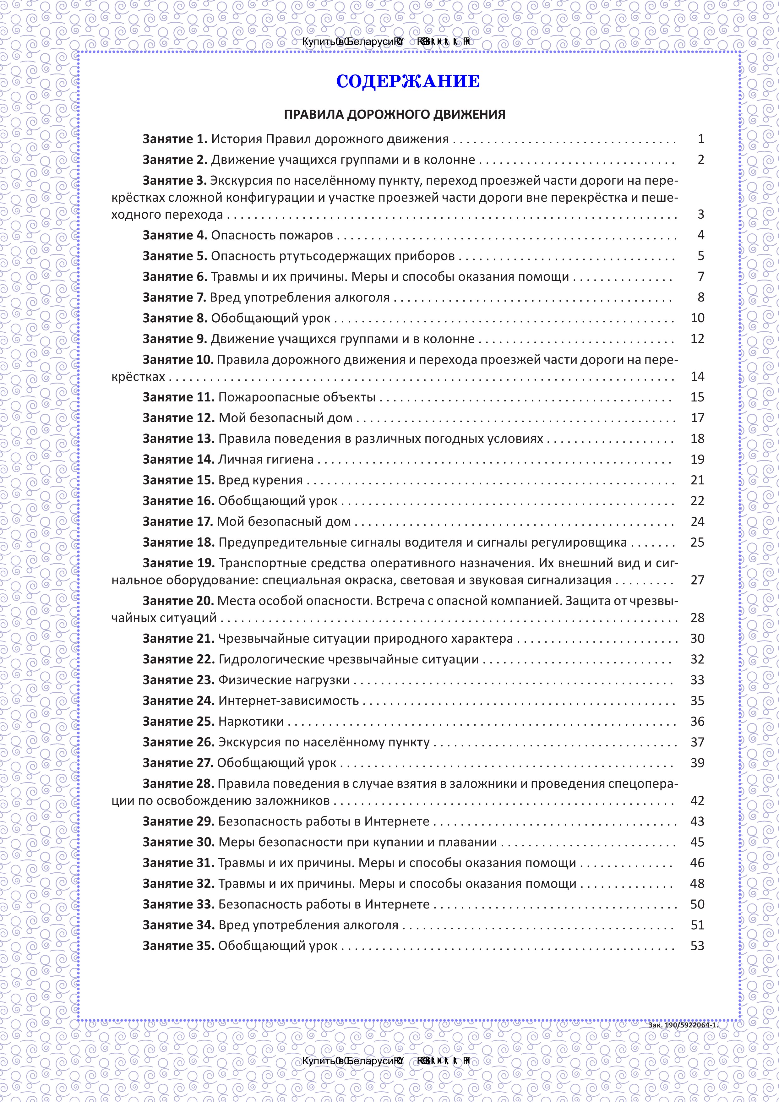 В рабочей тетради рассматриваются правила дорожного движения, доступные для понимания учащихся 5 класса, правила поведения на воде, вопросы их действий в чрезвычайных ситуациях (пожар, утечка газа), правила обращения с приборами, содержащими ртуть, а также травмы и меры оказания первой помощи при их получении, безопасная работа в Интернете. Материал, пройденный за определенный период, повторяется на обобщающих уроках в виде прохождения учащимися тестов.
